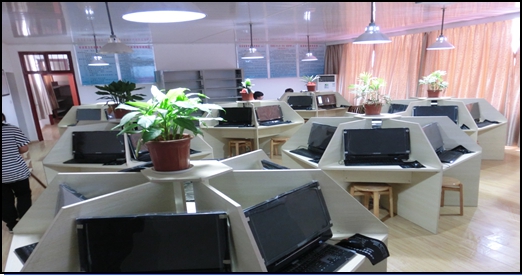 創(chuàng)業(yè)工作間內(nèi)可容納八個(gè)創(chuàng)業(yè)小組。配置兩組專業(yè)書架,以供學(xué)生隨時(shí)查閱和自學(xué)使用(如圖2示),同時(shí)每天公布銷售業(yè)績(jī),激勵(lì)學(xué)生。
