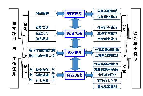 電商專業(yè)的學(xué)生每年參與浙江省四部委組織的年度電子商務(wù)大賽,教學(xué)中以大賽為鍥機(jī)實(shí)現(xiàn)電商基本知識(shí)的測(cè)試,同時(shí)在創(chuàng)業(yè)實(shí)戰(zhàn)提煉項(xiàng)目,完成創(chuàng)新創(chuàng)業(yè)精英賽。真正實(shí)現(xiàn)大賽平臺(tái)和教學(xué)實(shí)踐的有序結(jié)合,既體現(xiàn)技能實(shí)訓(xùn),又體現(xiàn)創(chuàng)新思維,更具有現(xiàn)實(shí)價(jià)值。創(chuàng)業(yè)團(tuán)隊(duì)平時(shí)的實(shí)戰(zhàn)過(guò)程與省教育廳的電子商務(wù)技能大賽非常吻合,學(xué)生的實(shí)戰(zhàn)與技能大賽的目標(biāo)一致性,可以更有效的促進(jìn)學(xué)生的實(shí)戰(zhàn)過(guò)程,強(qiáng)化自身的技能提升。